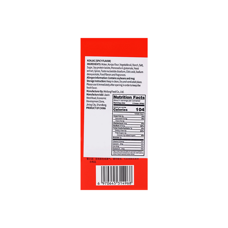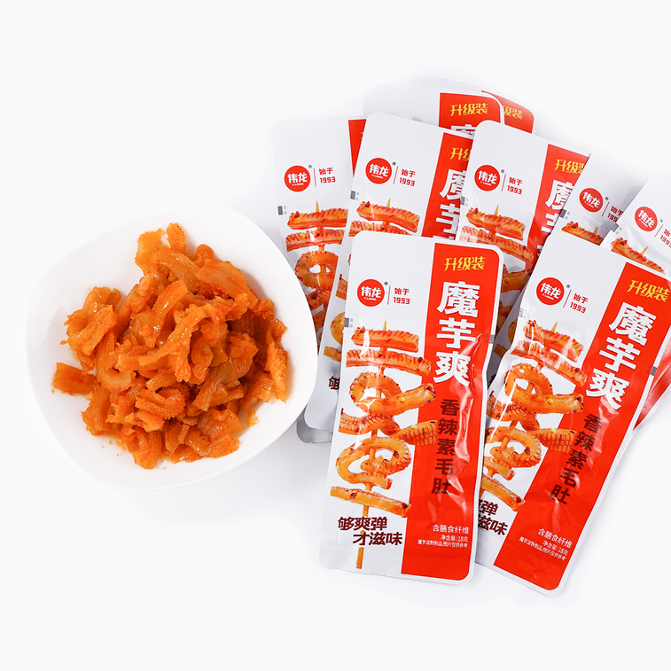 V-Loong Konjac, Spicy Flavor 350 g 伟龙 魔芋爽香辣味,Spicy Strip Konjac Snacks, Chinese Special Food, Low Calorie, for Vegetarians